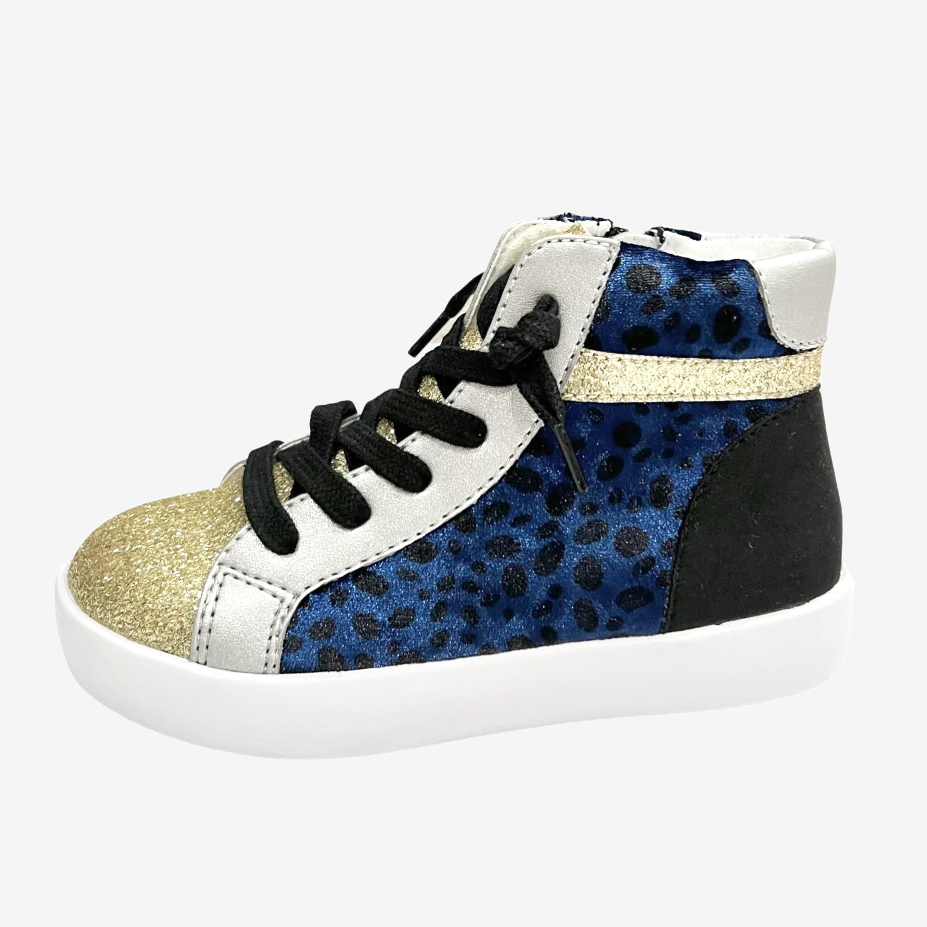 Elevate your style with our newest arrival! The ABBY steals the spotlight featuring a stylish navy and black textured pattern accented by shimmering glitter and gold. A definite must-have for every fashion lover! Plus, the inner side zipper and adjustable laces make it effortless to slip on and off for everyone.