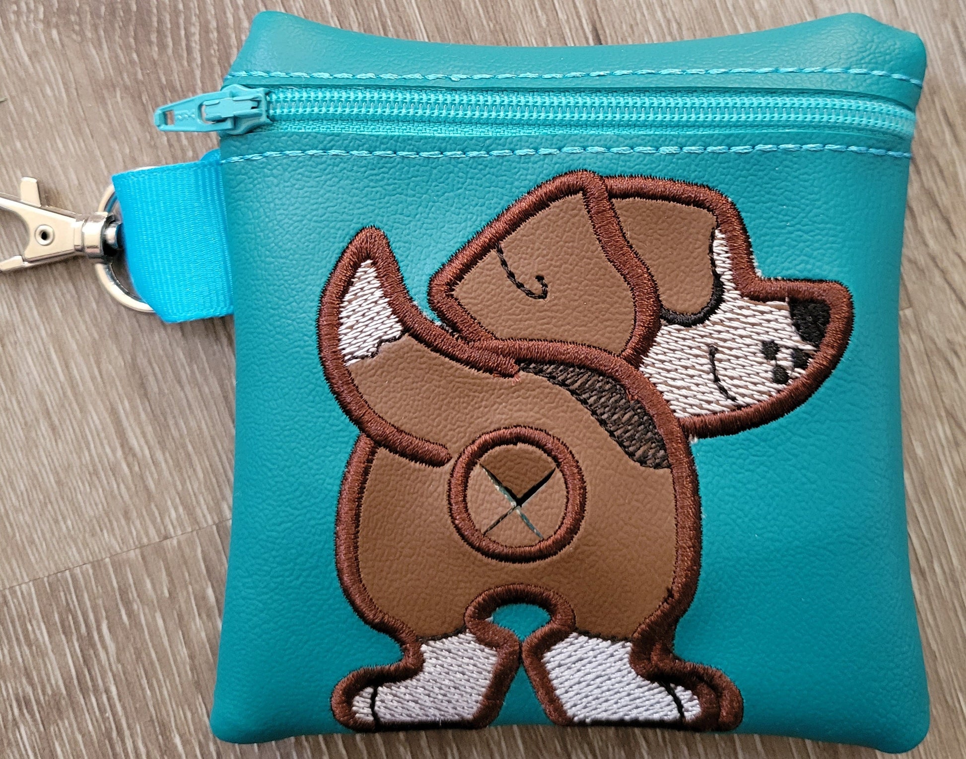 This listing is for one vinyl poop bag holder with a Beagle embroidered on it. The bag measures 4.5 x 4.5. It is big enough for two rolls of poop bags and a hand sanitizer or treats. Some different items you might need along your walk. I include one roll of bags to get you started. There is also a loop with a hook to attach your bag to your leash. I made this one with teal vinyl, but I have many different colors of vinyl if you would like something different. The vinyl colors and embroidery thread colors can be changed to look more like your dog.