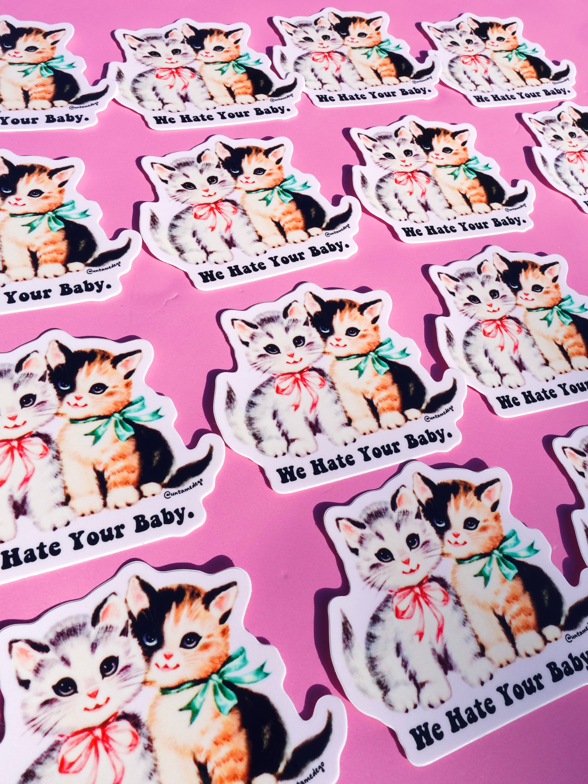 Funny Vinyl Sticker – We Hate Your Baby Cats Waterproof Dark Humor Sticker