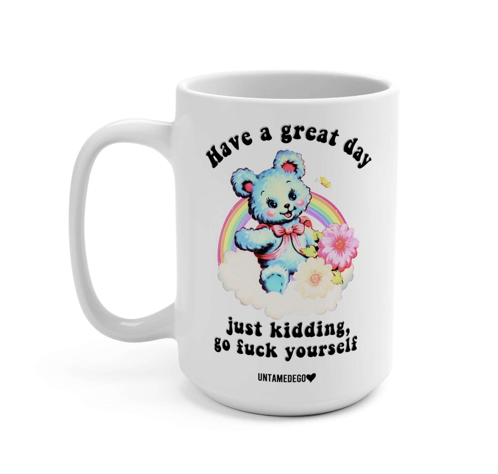 Looking for a funny, rude coffee mug with attitude? This sarcastic bear mug says it all: “Have a great day… just kidding, go f*ck yourself.” It’s the perfect mix of cute and offensive — ideal for coffee lovers who enjoy dark humor and brutally honest gifts.