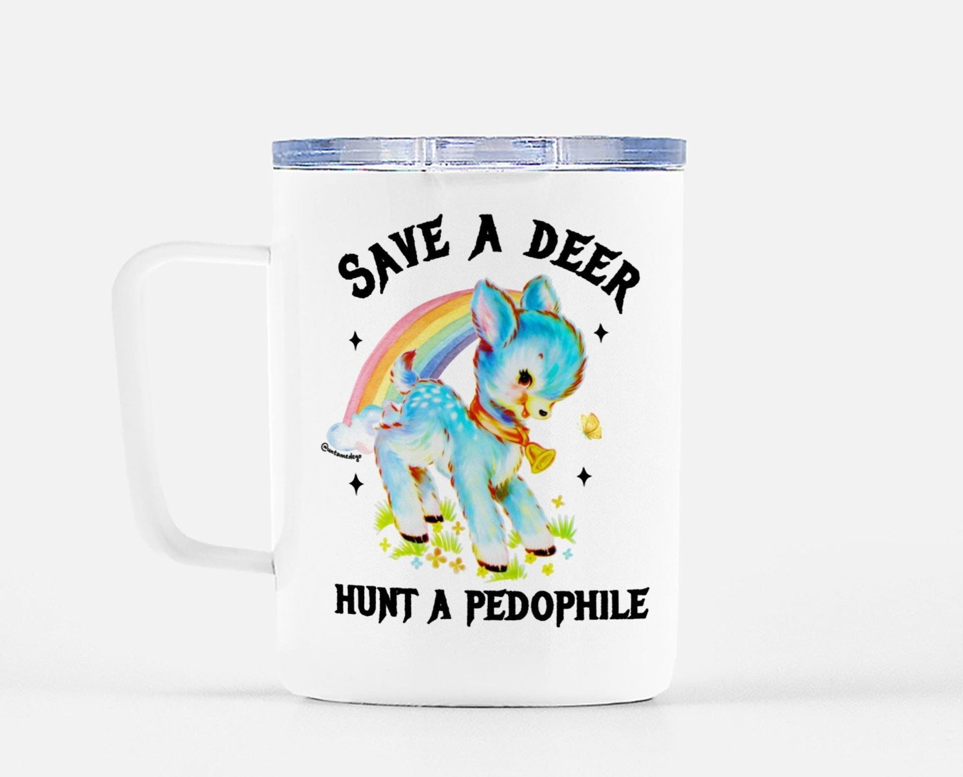 The deluxe size of the classic mug in white with a black handle. It looks great and is microwave and dishwasher-safe. Holds a generous 15oz. of your favorite warm beverage.