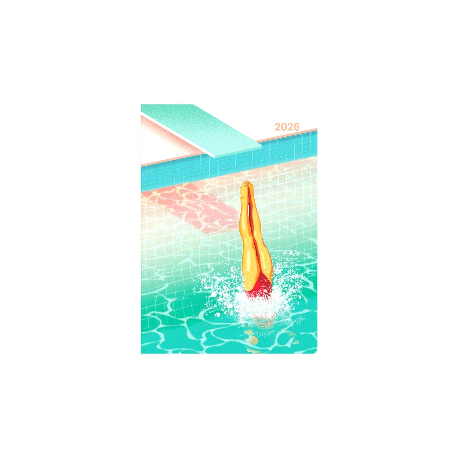 A new collection for 2026, Submerge features two designs; a figure diving into a bright, clear pool, and a figure wading into the ocean. Both designs are warm, bright, and embody the feeling of summer.