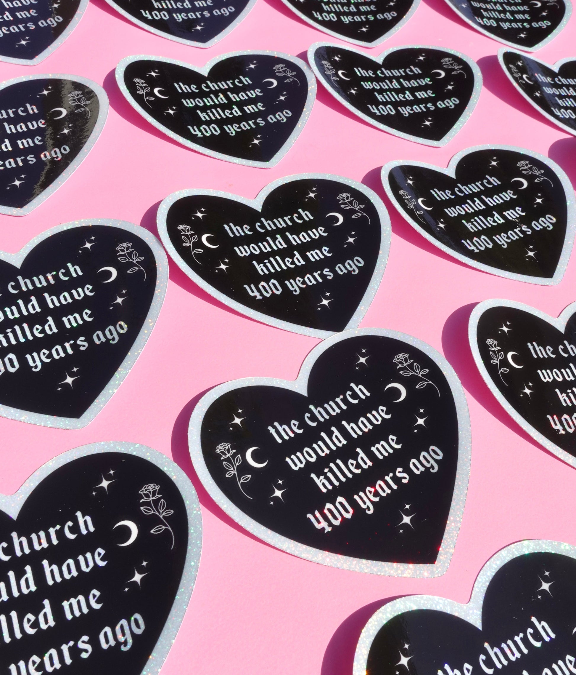 The Church Would Have Killed Me Sticker – Gothic Heart Holographic Vinyl Witchy Feminist Decal