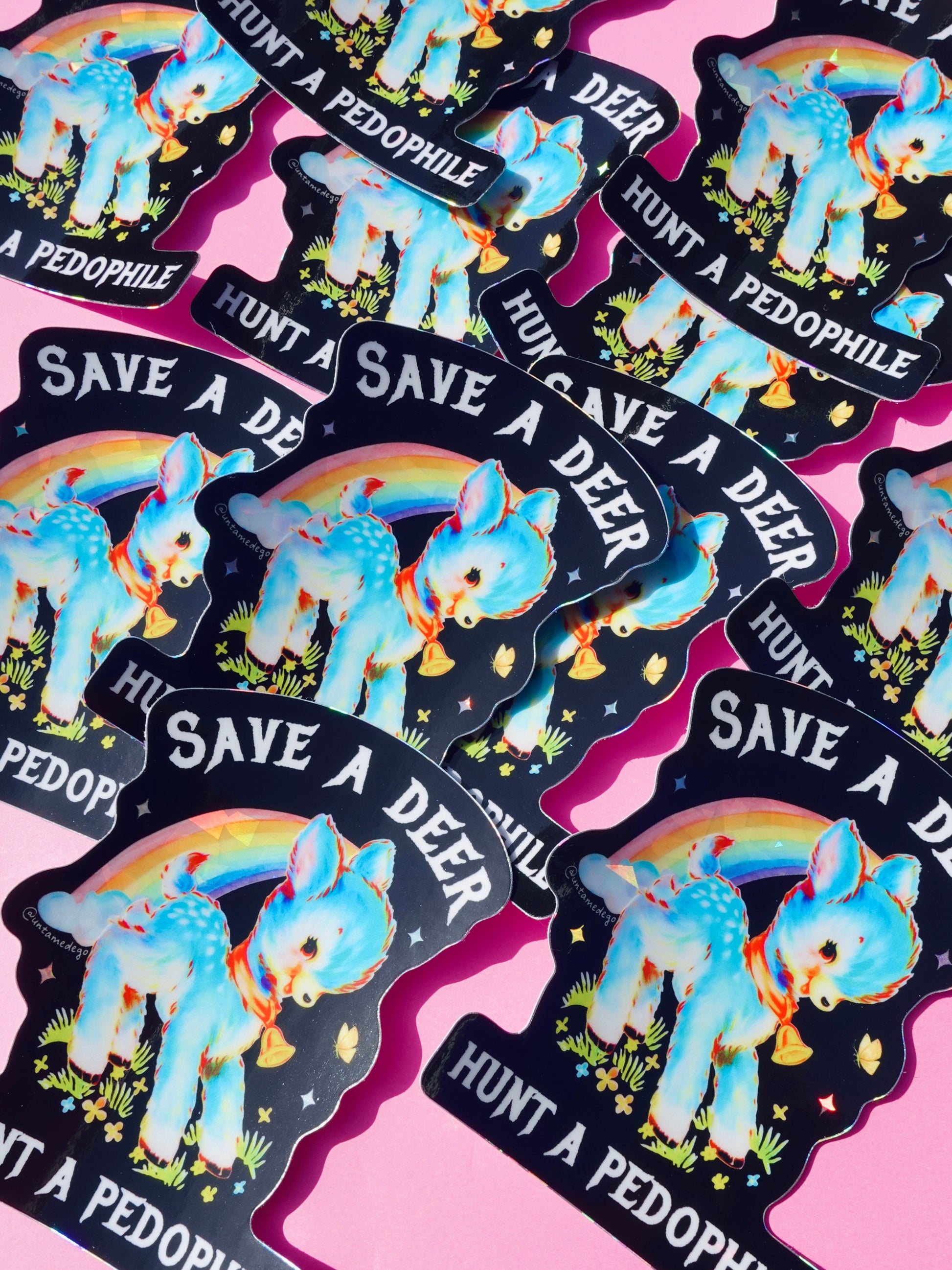 Vinyl Sticker – Save a Deer Hunt A Pedophile – Anti-Pedophile Waterproof Dark Humor Decal Sticker